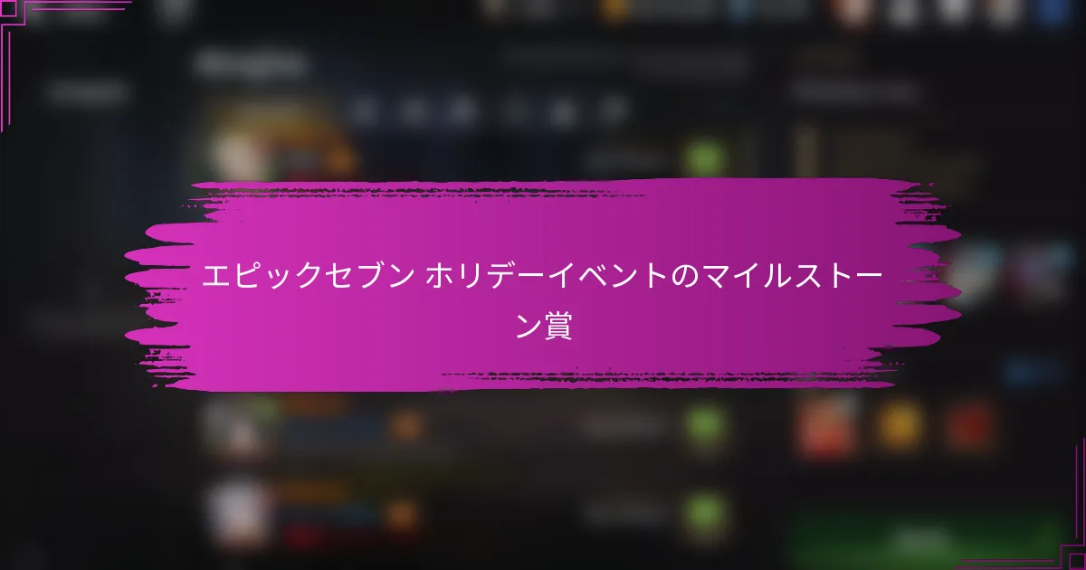 Epic Sevenの今後のホリデーイベントは、プレイヤーがテーマに沿ったアクティビティを通じてマイルストーン報酬を獲得するエキサイティングな機会を提供します。特定のタスクを完了することで、プレイヤーはゲームプレイ体験を向上させる階層報酬をアンロックできます。これらの報酬を最大化するためには、効率的なタスクの完了に焦点を当て、コミュニティの戦略を効果的に活用することが重要です。 Epic Sevenの今後のホリデーイベントは何ですか? Epic Sevenの今後のホリデーイベントは、プレイヤーがテーマに沿ったアクティビティに参加しながらエキサイティングなマイルストーン報酬を獲得するチャンスを提供します。これらのイベントは通常、ユニークなチャレンジ、コミュニティ参加、ゲーム体験を向上させる報酬を特徴としています。 イベント名とテーマ このホリデーシーズン、プレイヤーは以下のような複数のテーマイベントを楽しみにしています: ウィンター・ワンダーランド・フェスティバル 新年の祝賀 フェスティブ・バトルロイヤル 各イベントは独自のテーマを持ち、ホリデースピリットとコミュニティの関与に焦点を当て、プレイヤーにさまざまなアクティビティを提供します。 開始日と終了日 ウィンター・ワンダーランド・フェスティバルは12月15日に開始し、12月31日まで開催されます。その後、新年の祝賀は1月1日に始まり、1月15日に終了します。フェスティブ・バトルロイヤルは1月16日から1月30日まで行われます。 プレイヤーはすべてのイベントに参加するためにカレンダーに印を付けるべきです。各イベントは期間限定の報酬とチャレンジを提供します。 …