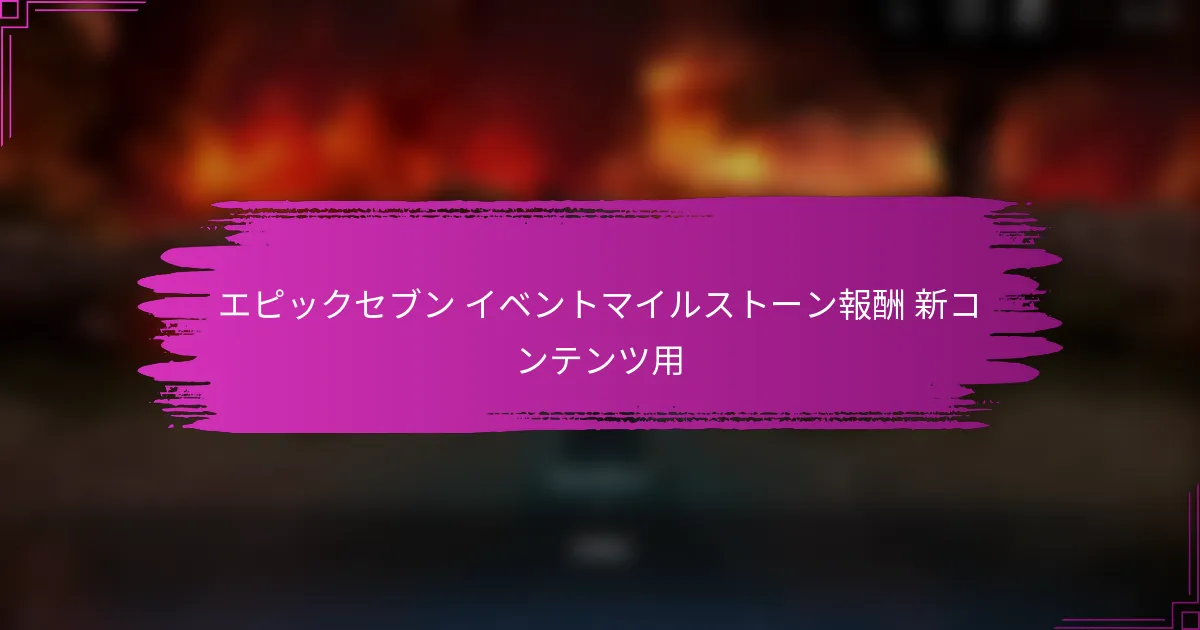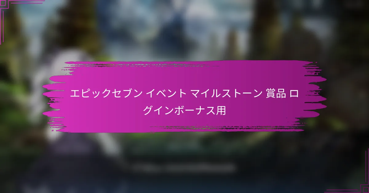 エピックセブンのイベントマイルストーン報酬は、特別なイベント期間中にプレイヤーが日々ログインすることで得られる貴重な報酬を提供します。継続的にログインすることで、プレイヤーはゲーム内通貨、アイテム、キャラクターを獲得し、ゲームプレイ体験を向上させることができます。これらの報酬を最大限に活用するには、日々のログインに対する献身と、イベントを成功裏に進めるための効果的な戦略が必要です。 エピックセブンのイベントマイルストーン報酬とは何ですか? エピックセブンのイベントマイルストーン報酬は、特別なイベント期間中にゲームにログインすることでプレイヤーが受け取る報酬です。これらの報酬には通常、ゲーム内通貨、アイテム、ゲームプレイを向上させ、プレイヤーの参加を促すキャラクターが含まれます。 イベント中に利用可能なマイルストーン報酬の概要 エピックセブンのイベント中、プレイヤーは指定された期間内に連続してログインすることでマイルストーン報酬を獲得できます。各マイルストーンに到達することで、イベントのテーマや期間に応じたユニークな報酬がアンロックされます。これらのイベントはプレイヤーの参加を促進し、貴重なリソースを提供することを目的としています。 マイルストーン報酬は階層化されていることが多く、プレイヤーがログインする日数が増えるにつれて報酬の価値が増します。この構造は、プレイヤーが日々ログインして利益を最大化することを奨励します。報酬には、通常入手が難しいアイテムが含まれることがあり、非常に人気があります。 各マイルストーンで提供される報酬の種類 各マイルストーンで提供される報酬の種類には、ゲーム内通貨、クラフト素材、限定ヒーロー、特別な装備が含まれます。プレイヤーは、エネルギーポーションや経験値ブースターなど、ゲームプレイ体験を向上させる消耗品を受け取ることもあります。 ゲーム内通貨(ゴールド、スカイストーン) 限定キャラクターまたはヒーロー 装備用のクラフト素材 消耗品(ポーション、経験値ブースター) これらの報酬は、新規プレイヤーとベテランプレイヤーの両方に対応するように設計されており、イベントに参加することで誰もが利益を得られるようになっています。報酬の多様性はイベントを魅力的に保ち、プレイヤーが継続的にログインすることを促します。 現在の報酬と過去のイベントの比較 現在のマイルストーン報酬を過去のイベントと比較すると、プレイヤーは報酬の種類や価値の進化に気づくことがよくあります。最近のイベントでは、以前のイベントに比べてより多くの限定キャラクターや高額のゲーム内通貨が導入されています。 …