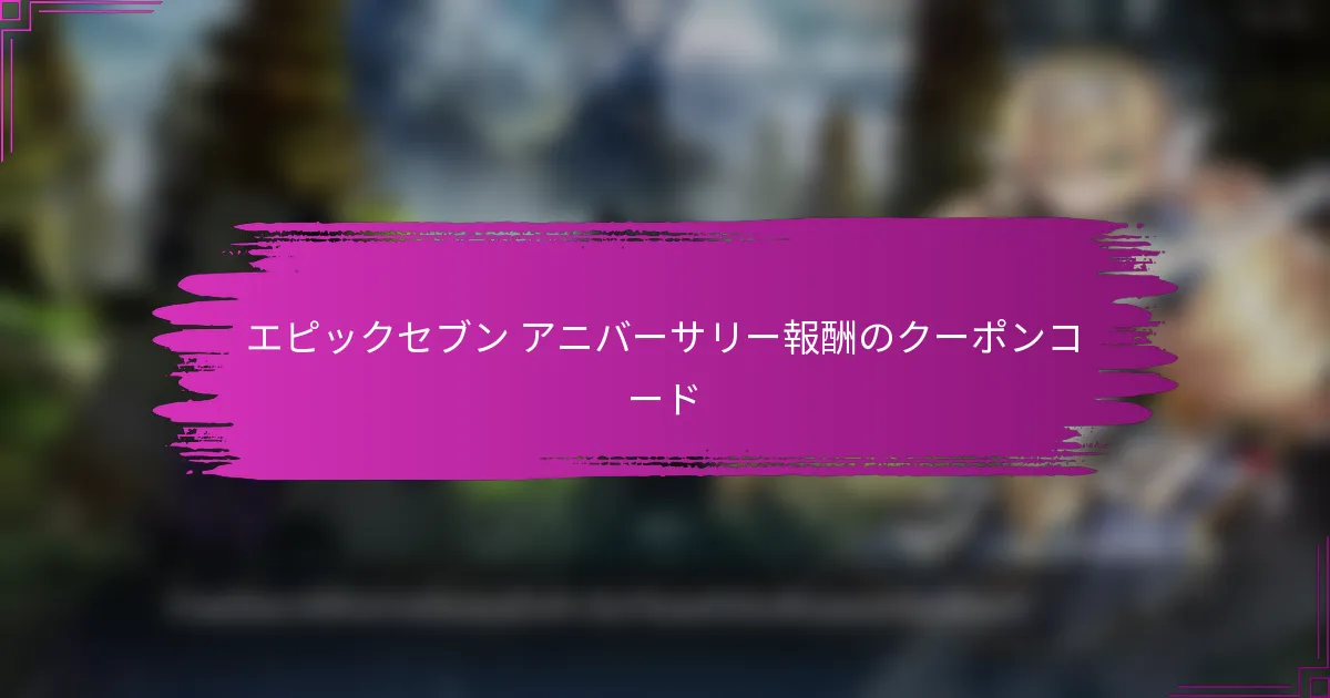 Epic Sevenのクーポンコードは、記念日の報酬としてプレイヤーに貴重なゲーム内アイテムやリソースを特別なイベント中に獲得する機会を提供します。これらのコードは、ゲーム内通貨、限定キャラクター、特別なイベントアイテムなど、重要な利点を提供し、全体的なゲーム体験を向上させます。これらのコードを引き換えるには、プレイヤーはゲーム内の指定されたエリアに正確に入力する必要があります。 現在のEpic Sevenの記念日報酬用クーポンコードは何ですか? 現在のEpic Sevenの記念日報酬用クーポンコードは、プレイヤーに貴重なゲーム内アイテムやリソースを提供します。これらのコードは通常、特別なイベント中に発表され、ゲーム体験を大幅に向上させることができます。 有効なクーポンコードのリスト 以下は、Epic Sevenの記念日報酬用の現在の有効なクーポンコードです: ANNIVERSARY2023 EPICGIFT2023 SEVENYEARS これらのコードをゲーム内に入力して報酬を受け取ることを忘れないでください。報酬にはゲーム内通貨、クラフト材料、または限定アイテムが含まれる場合があります。 各クーポンコードの有効期限 各クーポンコードには特定の有効期限があり、その期限を過ぎると無効になります。現在のコードは2023年12月31日に期限切れとなります。 …