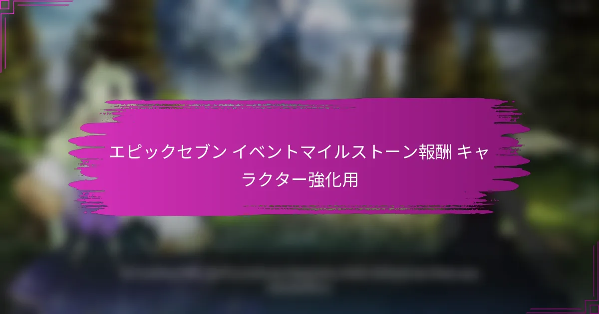 エピックセブンのイベントマイルストーン報酬は、プレイヤーがゲーム内イベント中に特定の目標を達成することで得られる貴重な報酬です。これらの報酬には、キャラクターのレベルアップや改善に大いに役立つ重要なリソースやアイテムが含まれており、これらのイベントへの参加は進行にとって重要です。 エピックセブンのキャラクター強化のためのイベントマイルストーン報酬とは? エピックセブンのキャラクター強化のためのイベントマイルストーン報酬は、プレイヤーがゲーム内イベント中に特定の目標を達成することで得られる報酬です。これらの報酬には、キャラクターのレベルアップや改善に大きく寄与するリソースやアイテムが含まれています。 イベントマイルストーン報酬の概要 イベントマイルストーン報酬は、プレイヤーが期間限定イベントに参加することで得られる構造化された報酬です。プレイヤーが特定のマイルストーンに到達すると、ゲームプレイ体験を向上させるさまざまな報酬がアンロックされます。これらのマイルストーンは、参加を促し、イベントチャレンジを完了するためのインセンティブを提供します。 通常、報酬にはキャラクター強化素材、クラフトコンポーネント、イベント外では簡単に入手できない独占アイテムが含まれます。プレイヤーはイベントインターフェースを通じて進捗を追跡できるため、次のマイルストーン達成までの距離を簡単に確認できます。 キャラクター強化報酬の種類 経験値(XP)ブースター キャラクター昇格素材 スキル強化素材 独占コスチュームまたはスキン ゲーム内通貨(ゴールドまたはジェム) 各タイプの報酬は、キャラクターを強化する上で重要な役割を果たします。XPブースターはキャラクターを迅速にレベルアップさせるのに役立ち、昇格素材はキャラクターの能力の高いティアをアンロックするために不可欠です。スキル強化素材は、プレイヤーが特定のスキルを改善できるようにし、キャラクターを戦闘でより効果的にします。 独占コスチュームやスキンは、見た目のアップグレードを提供するだけでなく、ゲームプレイの利点ももたらすことがあります。ゲーム内通貨は追加のリソースを購入するために使用でき、キャラクターの成長をさらに助けます。 キャラクター開発におけるイベントマイルストーンの重要性 …