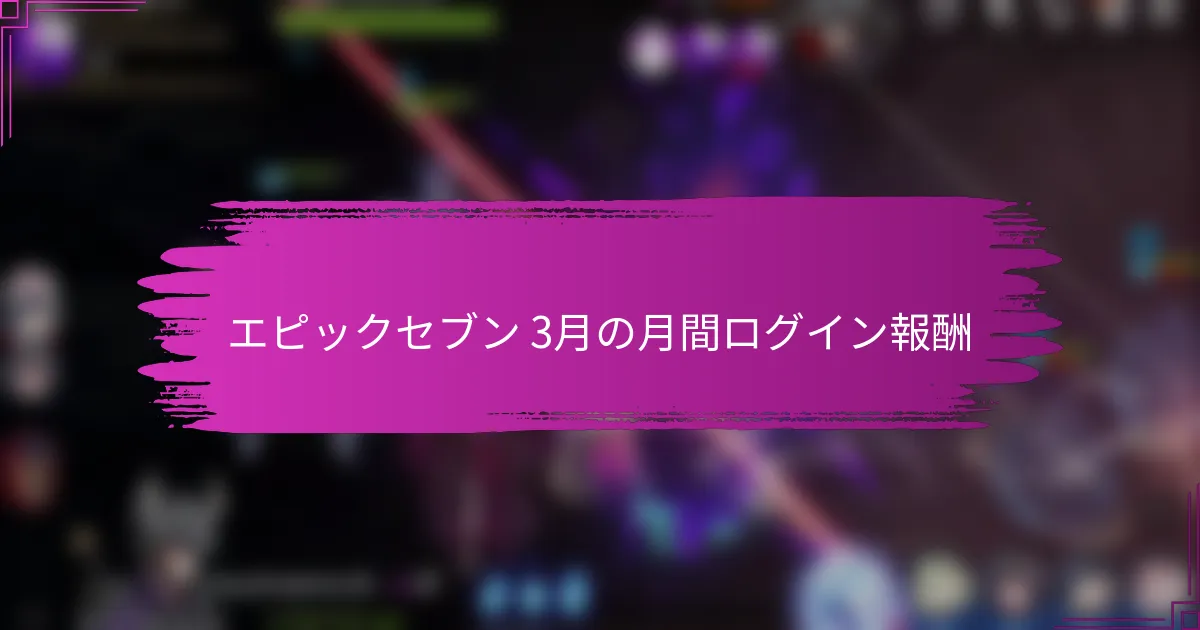 エピックセブンの3月の月間ログイン報酬は、プレイヤーが毎日ログインすることで貴重なアイテムやリソースを集めるエキサイティングな機会を提供します。毎日異なる報酬が用意されており、ゲーム内のメールボックスから簡単に受け取ることができるため、継続的な参加を促します。これらの報酬を戦略的に活用することで、プレイヤーはゲームプレイを向上させ、キャラクターを効果的に強化することができます。 3月のエピックセブンの月間ログイン報酬とは? エピックセブンの3月の月間ログイン報酬は、プレイヤーが月の間に毎日ログインすることで得られるさまざまな貴重なアイテムやリソースを提供します。これらの報酬は、ゲームプレイを向上させ、継続的な参加を促すために設計されています。 3月のデイリー報酬の内訳 今月、プレイヤーは毎日異なるアイテムを獲得できる構造化された報酬システムを期待できます。報酬には通常、ゲーム内通貨、クラフト素材、独占キャラクターや装備が含まれます。 例えば、初日にログインしたプレイヤーは少量のゴールドを受け取ることができ、次の日以降はレアなアーティファクトやキャラクター召喚などの高ランクの報酬が提供されるかもしれません。 以下はデイリー報酬の簡単な概要です: 1日目:ゴールド 2日目:クラフト素材 3日目:キャラクター召喚チケット 4日目:レアアーティファクト 5日目:強化素材 今月の報酬の種類 3月に利用可能な報酬は、ゲームプレイのさまざまな側面に対応するアイテムの範囲を含んでいます。プレイヤーは、キャラクターや全体的なゲーム体験を向上させるリソースを受け取ることを楽しみにしています。 主な報酬の種類は以下の通りです: …